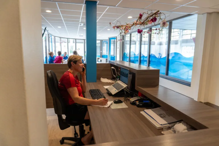 - Je maakt een praatje en zorgt voor een fijne, ontspannen sfeer in de ontspanningsruimte, de plek naast het zwembad waar cliënten tijdens het zwemmen iets kunnen drinken of uitrusten.